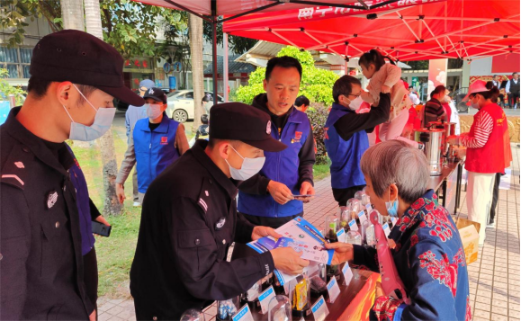 活動現(xiàn)場,黨員和志愿者們精神飽滿,分工協(xié)作,互相配合,搭建起禁毒宣傳、垃圾分類、便民理發(fā)、健康檢查等展位,為轄區(qū)居民提供各類便民服務(wù)。