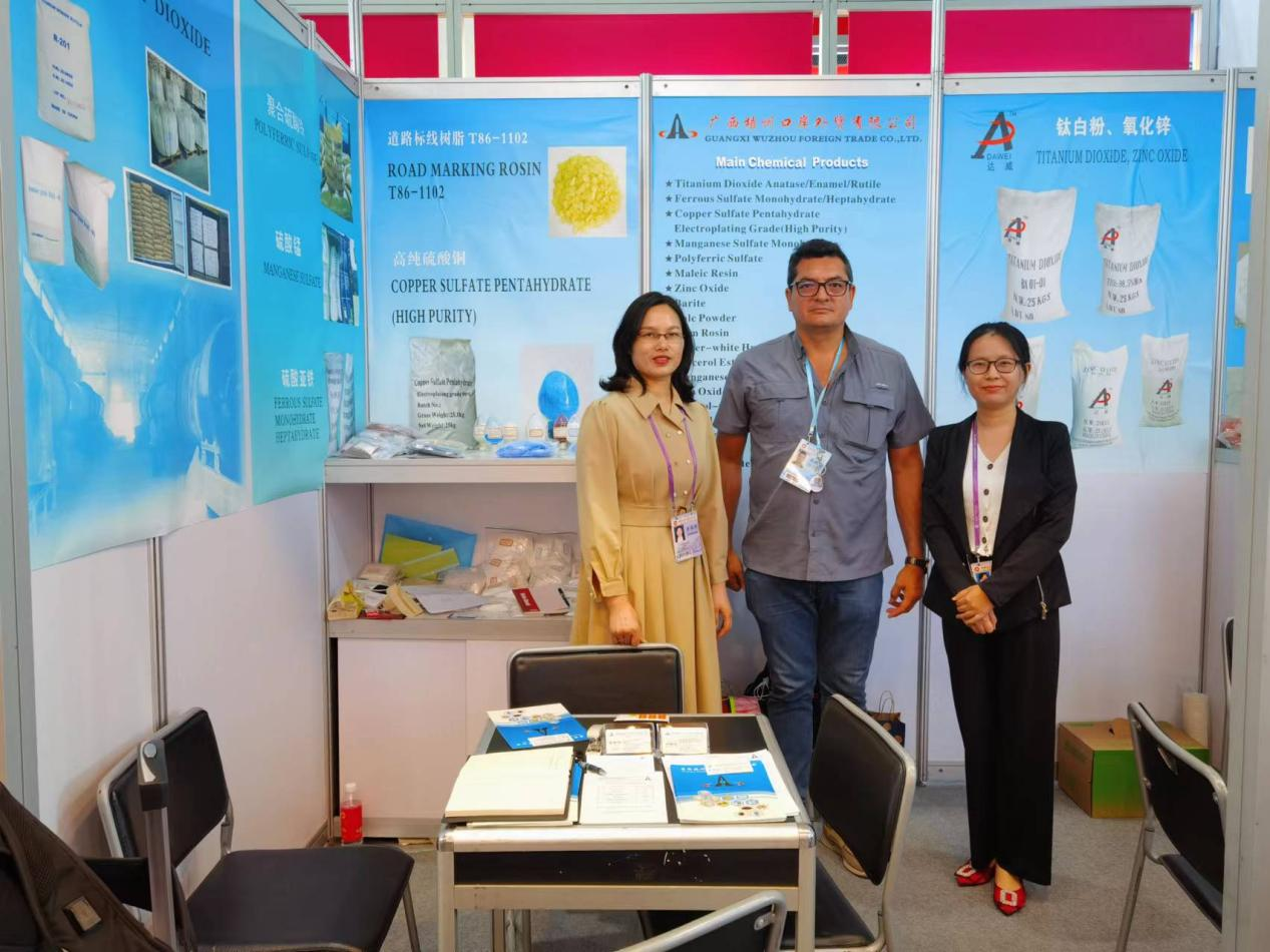 梧州口岸公司共參加三期廣交會(huì)線下展,每期參展產(chǎn)品均為公司出口業(yè)務(wù)的拳頭產(chǎn)品,包括鈦白粉(二氧化鈦)、高純度硫酸銅、氧化鋅、松香、八角及木衣架等化工品、土畜產(chǎn)品、保健品和輕工工藝品。各業(yè)務(wù)部門搶抓機(jī)遇,精心準(zhǔn)備產(chǎn)品樣板,認(rèn)真布展,并通過視頻、圖片、文字及樣品展示等方式,全方位推介參展產(chǎn)品,備受境內(nèi)外客商青睞。所在展位的客商訪問量和初步意向簽約量均頻頻告捷。參展首日,展位訪問量平均每小時(shí)70余人次,有初步采購意向的占比達(dá)10%。